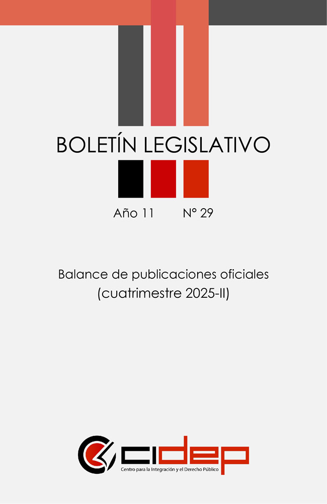 El Boletín Legislativo CIDEP (ISSN 2790-4784), de circulación cuatrimestral, es un medio de difusión del Centro para la Integración y el Derecho Público en el que se recogen las leyes, decretos, resoluciones, providencias, sentencias y demás actos de interés publicados por el Poder Público Nacional durante el período respectivo en la Gaceta Oficial de la República. Ello en virtud de lo previsto en la Ley de Publicaciones Oficiales, la Ley Orgánica de Procedimientos Administrativos, la Ley Orgánica del Tribunal Supremo de Justicia y otras normas integrantes del ordenamiento jurídico venezolano.