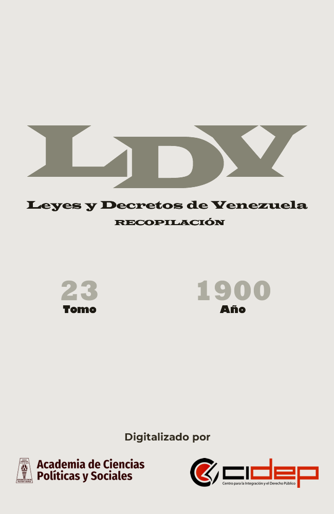 Cita sugerida: Academia de Ciencias Políticas y Sociales, Leyes y Decretos de Venezuela, t. 23 (1902), ACIENPOL, Caracas, 1992, recuperado de www.cidep.com.ve